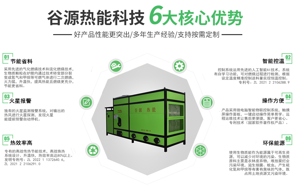 安徽谷源熱能科技有限公司坐落于大別山腳下的紅色革命老區——六安,是一家專業從事熱源產品的研發、生產、銷售、服務于一體的綜合性企業。   本公司主要生產:糧食烘干用生物質環保熱風爐、生物質稻殼熱風爐、生物質顆粒取暖爐、浴室用生物質顆粒爐、涂裝生產線用生物質顆粒爐、燃油熱風爐、天然氣熱風爐等熱源產品,公司產品采用微電腦控制,可自動點火,根據設定溫度自動進料、自動控溫。使用燃料為生物質顆粒,屬于可再生資源,相對運行成本低,節能環保。   我們以顧客為導向,一直致力于以提高產品質量、降低客戶使用成本、節能環保為研發目標,不斷創新。   公司秉承“用心服務,客戶至上;質量為本,精益求精!”的經營理念,以“節能環保”為使命,以“綠色燃料”為保障,以“先進燃燒技術”為支撐,繼續推進節能環保事業不斷向前發展。為改善能源結構,打造低碳城市,創建環境美好資源節能型社會,做出不懈努力。我們愿意與您真誠合作、共創雙贏,讓我們攜手共創輝煌的明天。竭誠歡迎各界朋友光臨惠顧!